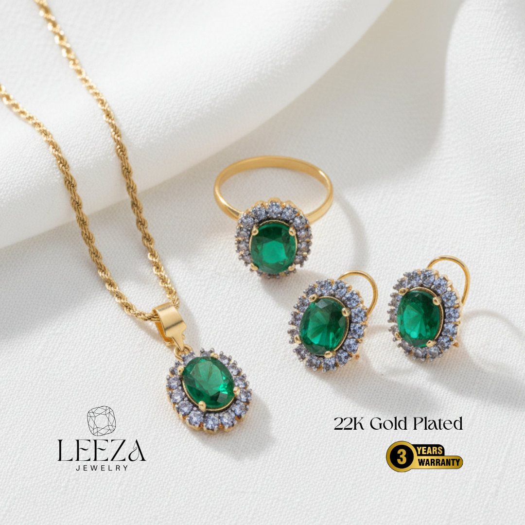 Complete Set – includes matching earrings, statement ring, and pendant with chain.